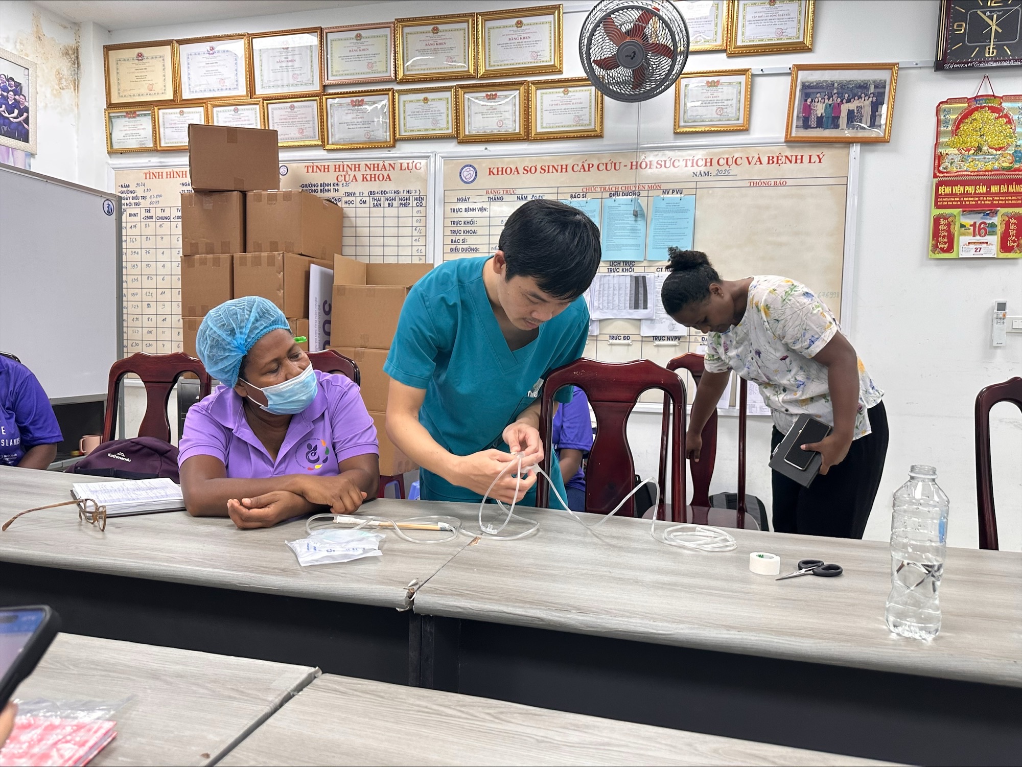 Following the conference, our team was joined by clinicians from Mongolia and the Solomon Islands for a week of hands-on clinical service. The collaboration focused on sustainable neonatal care, including the construction of bubble CPAP systems for low-resource settings, IV access, and advanced wound care. Clinical rounds provided a forum for complex case management—addressing congenital chylothorax, TEF, sepsis, and syphilis—while formal lectures covered the spectrum of respiratory support from non-invasive methods to SIMV and HFOV ventilation. Simultaneously, our family medicine and dental teams provided vital education on preventative childhood diseases and oral hygiene.